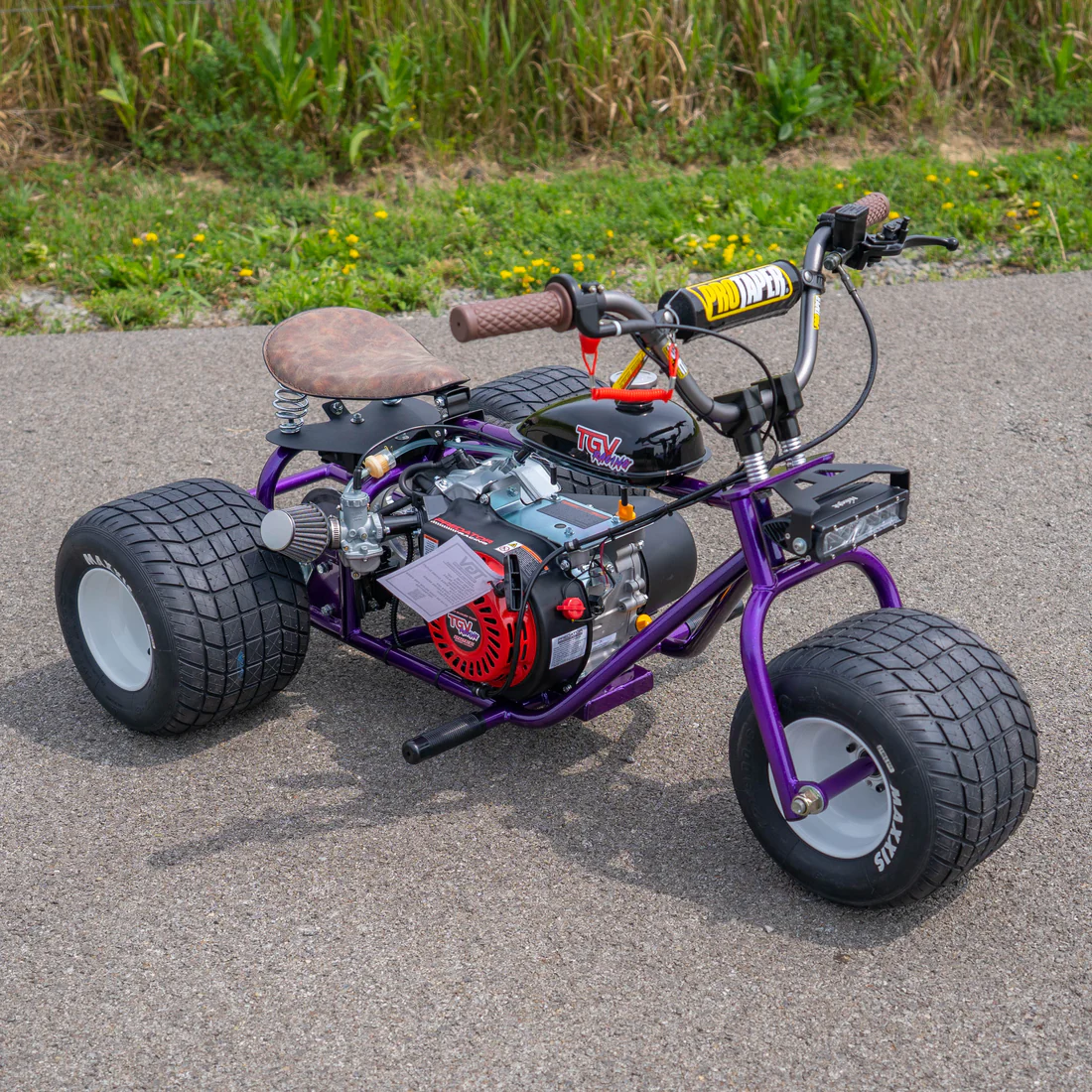 The Purple Haze TGV Mini Trike is a vibrant and stylish ride designed for young adventurers. With its eye-catching purple color and sleek design, it stands out while offering a smooth, comfortable, and fun experience for kids. This trike features a sturdy frame, high-quality tires, and adjustable components to ensure it grows with your child.